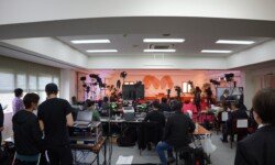 そして、音響・映像配信業者(プロ)により、たくさんの機材の搬入・設営が行われました。