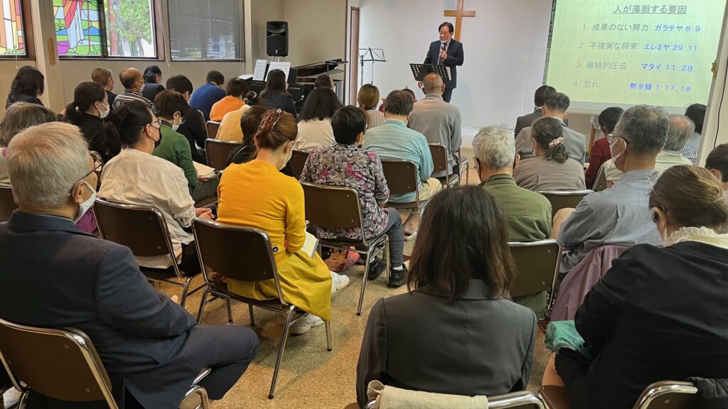 コロナ禍の影響も残る中、4年振りの対面での開催でしたが、聖会に86名、子ども聖会に11名、ライブ配信に10名以上の参加者がありました。中には朝早くに教会を出て3時間以上かけて参加された方もおられ、久し振りにお会いして交わりを深め、お互いに励まし合う時が与えられ、この聖会を通して豊かに主の恵みを受け取ることができて感謝でした。