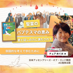 天のお父様は私たち人間のこんな弱い性質を十分知ってくださって解放し、神の子として「御国を受け継ぐ」(エペソ1章14節)確信をもち、復活のイエス・キリストのように誰かのために自分のいのちを注ぐ人生を歩むことができるように異言での祈りを与えてくださっているという、深い知恵とご親切の愛にただただ感動しています。今は喜びをもって、「異言は怪しいものではないよ。私たちを愛してやまない天のお父様からの素晴らしいプレゼント(賜物)なんだよ。」とみんなに勧めることができるようになりました。主の御名を心からほめたたえます!