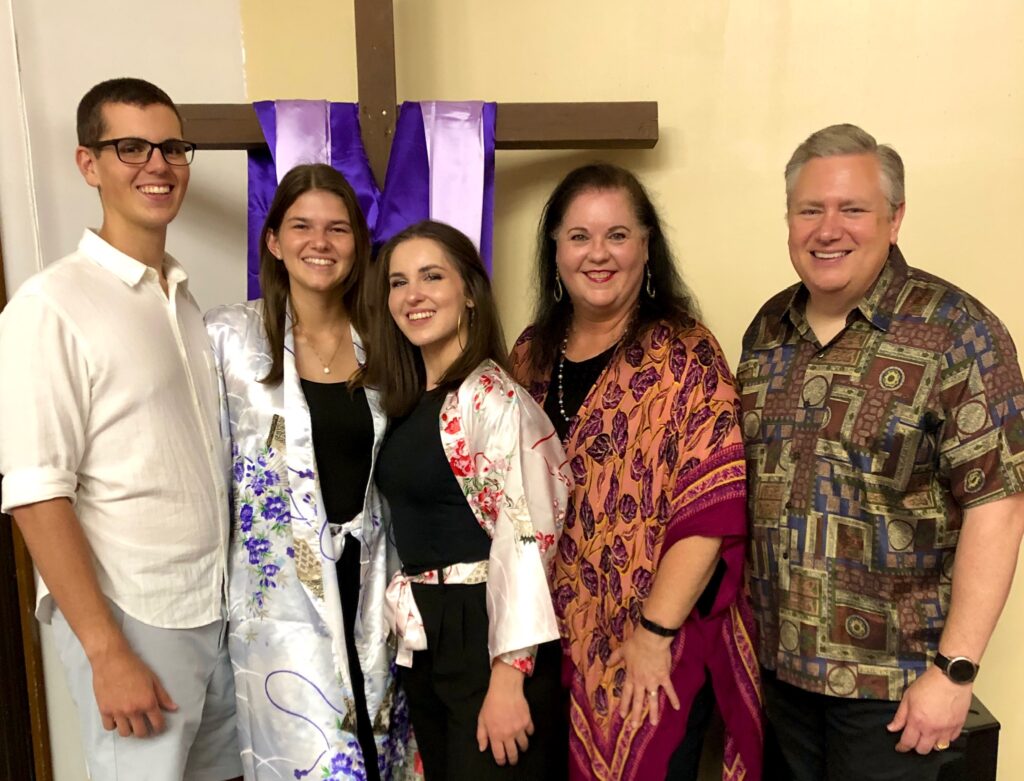 個人的なこととして、私たちには二人の子どもがいます。娘のダニエルは日本を離れ、アメリカ空軍の士官として任官しました。また、彼女はアッセンブリーズ・オブ・ゴッドのライセンスを受けた牧師でもあります。軍のコミュニティの中で、今も彼女の人生を通してイエスの光を輝かせ続けていることを、私たちは感謝しています。
