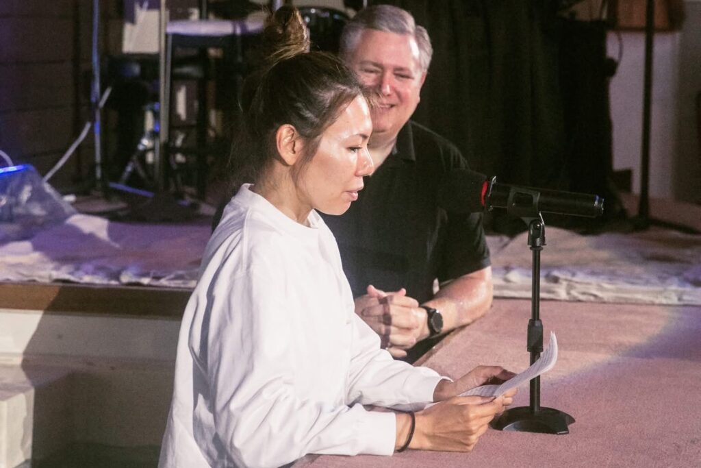 さて、ダンとポーラの話に戻ります。私は知らなかったのですが、ポーラ自身も『仕事(旅行業界でのキャリア)を一度手放し、1年間両親と沖縄で奉仕しなさい』という主の導きを感じていました。理解していただきたいのですが、大学時代の私たちは、私は“兄のうるさい友だち”、彼女は“友だちのうるさい妹”という関係で、お互い特別な感情などありませんでした。ところが沖縄に着くと、エドが私たちを座らせて言いました。『二人とも、仲良くしなさい。』——そして私たちは本当に仲良くなったのです。私は1991年11月に沖縄へ、ポーラは1992年1月に到着し、3月には交際、4月に婚約、そして1992年7月に結婚しました!長い間お互いを知っていたからこそ、『これは神の計画だ』とすぐに分かりました。私たちは沖縄で、ユース、ヤングアダルト、礼拝、その他さまざまな分野を担う副牧師として奉仕し、その後、主任牧師(Lead Pastor)として教会を導くようになりました。